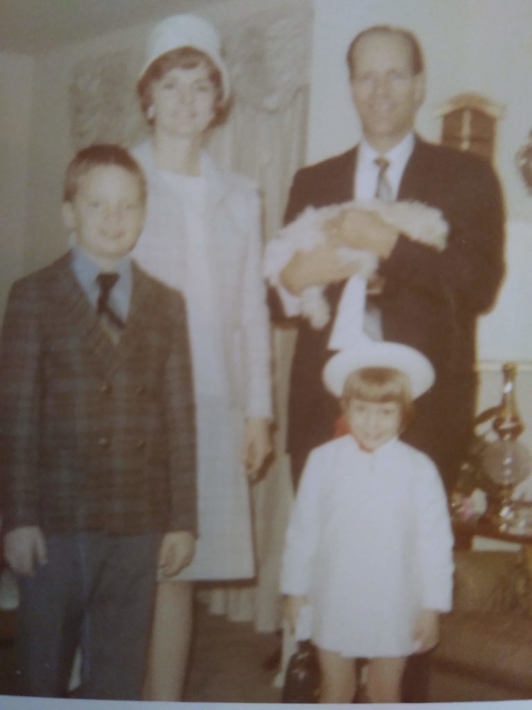 Easter 1970, 1554 Sycamore Glen Ct, St. Louis: Steve, Marni, Claude Jr., Kaeti