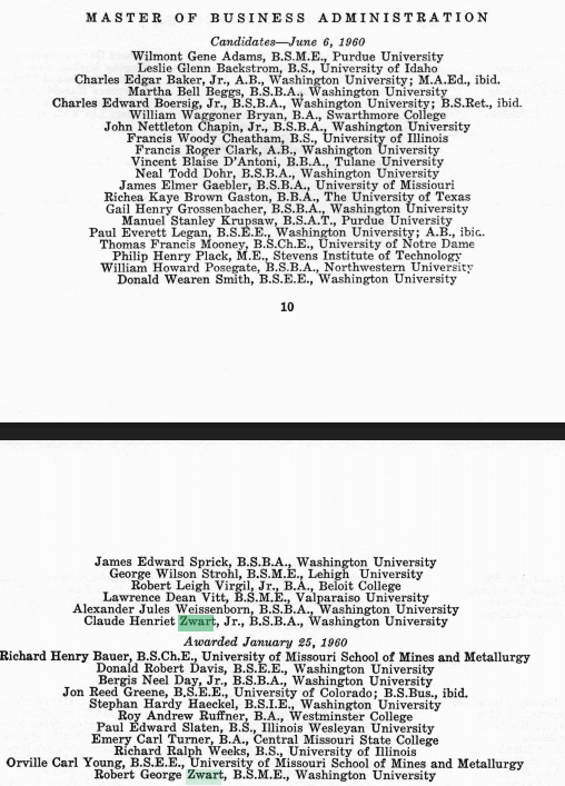 2020 marks the 60th anniversary of Bob and Claude Jr getting their Masters in Business Administration from Washington University in 1960. Bob told Steve there wasn’t a thesis required.